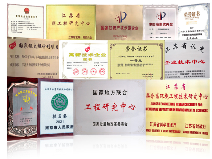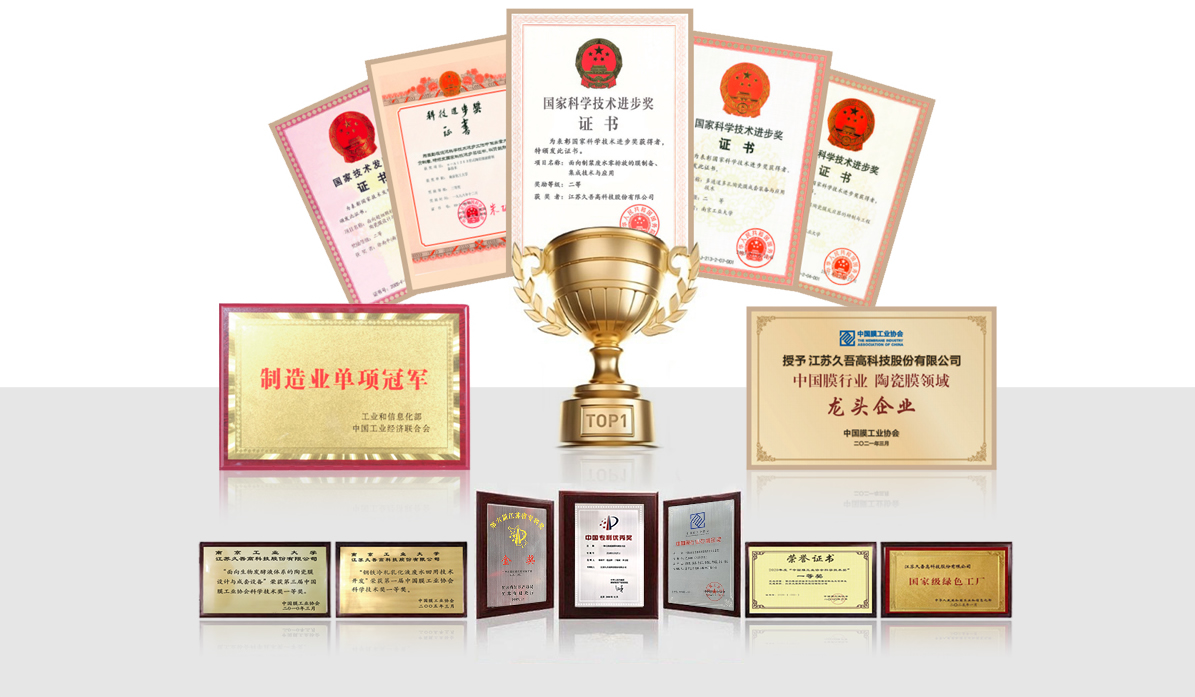 公司先后获得四次国家科技前进奖、一次国家手艺发明奖公司陶瓷滤膜产品及成套装备